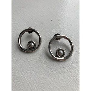 Uno de 50 DIVINE Earrings Pearl in Silver Plated Hoop 1 1/8"