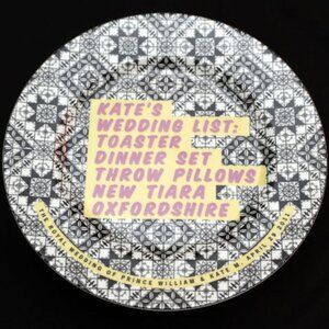 Design enthusiasts, antiroyalists, and Britons experiencing wedding fatigue would rather have something rebellious. To answer that call, London's quirky KK Outlet has thrown together a five-piece collection of unofficial royal-wedding plates. A funky pink, yellow and black plate imagines Kate's wedding list: "Toaster, dinner set, throw pillows, new tiara, Oxfordshire."