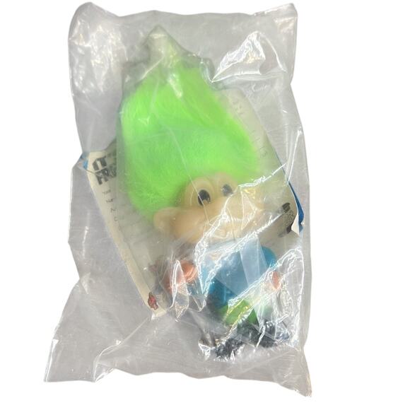 The product is an unopened Burger King Kids Club Glow in the Dark Jaws Troll toy from 1993. This collectible toy features the popular character Jaws from the Trolls franchise, making it a desirable item for fans and collectors alike. With the recommended age range of 4+, this toy is perfect for young children who enjoy playing with colorful and interactive toys. Additionally, the glow in the dark feature adds an extra element of fun and excitement to the toy, making it a great addition to any fast food toy collection.