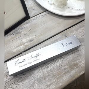 Gerity Silverplate Candle Snuffer 1740 Reproduction. Elegant silver candle snuffer with a classic design. Still in plastic- never opened. Comes in original box and with cleaning cloth bag.- 10” long. Perfect for adding a touch of vintage charm to your home. Smoke Free Home