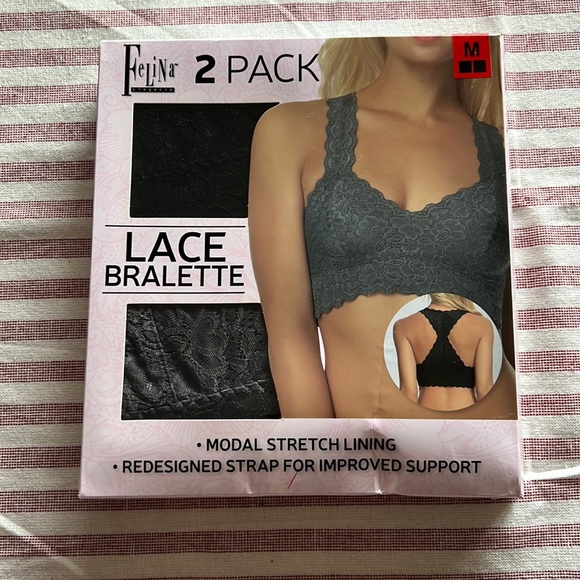 Two racer back lace bralette’s! Black & grey. Unopened package