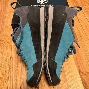 Unparallel’s approach shoe, made with their signature, new-age Stealth c4-esque rubber compound. Nice for wider feet, or those looking for a more minimalist approach shoe. Wrong size for me, otherwise I’d keep them! Worn one time, for a half day of cragging. No scrambling done in them and less than a half mile of hiking.