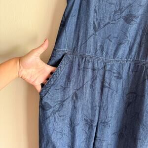 Unpublished Blue Denim Floral Print Square Neck Shoulder Tie Overalls Medium