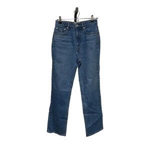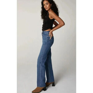 classic straight leg fit. High-rise and designed in our comfort stretch denim. This fabric has the look of rigid, non-stretch denim with just the smallest amount of stretch for added ease. Featuring 5 pocket styling and antique nickel hardware.