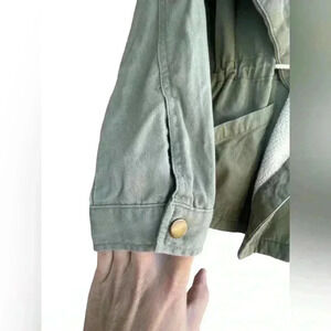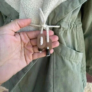 Unpublished women’s asymmetric fur fully lined navy green front pockets around waist ties 100% cotton super cozy jacket perfect for the chilly fall weather