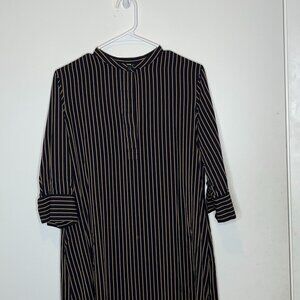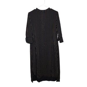 A versatile striped midi dress with a relaxed fit, button-down front, and roll-up long sleeves. Ideal for casual or semi-formal settings.