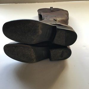 Unr8ted brown size 10M, knee high riding boot, zipper down side, boot straps Women's blacks over the knee boots /knee high boots with little brassy looking embesslments immaculate condition gently used super warm and comfy considerably light weight for the blocked heels size nice material great pre-owned condition. I am a new seller and look forward to working with you! Accepting reasonable offers. Thank you