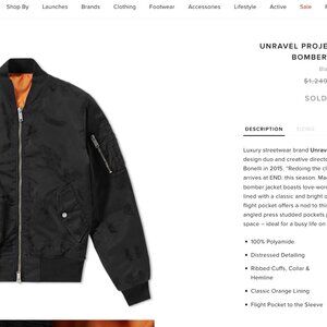 Unravel Project Ben Taverniti Bomber Jacket Size 36