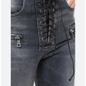 Unravel Project High Rise Lace Up Skinny Jeans in Black Women's Size 26