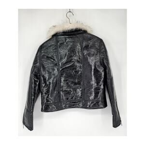 Unreal Fur Black Wet Look Aviator Jacket Faux Leather & Fur Collar Women’s XL