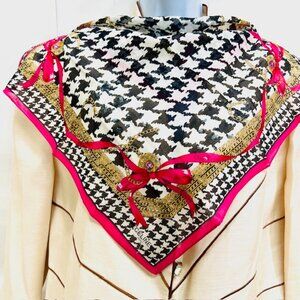 #34) Unsed Celine , Cotton/Silk Mini Scarf/Handkerchief,, color black white gold pink bow trim,