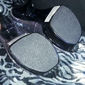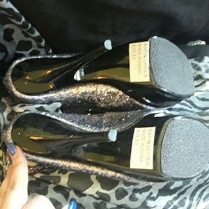 5 + inch stilettos !!! ALL SILVER / bluish GLITTER back design and front design "PARTS" taken out of heel for a very daring nite look!! OH my!!! NWT!