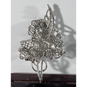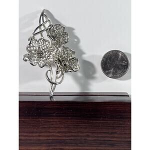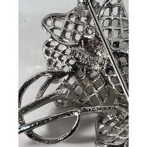 Add a touch of elegance to your attire with this stunning silver brooch pin. With its unique 5 leaf clover design, this piece is sure to catch the eye of anyone who sees it. The brooch features a beautiful leaf shape and is made of high-quality silver metal. The main stone color is also silver, which gives it a classic look that will never go out of style. This brooch is perfect for any occasion, whether you want to dress it up for a formal event or wear it casually with a simple outfit. The Leaf brand ensures its quality and durability, making it a great investment piece for your jewelry collection. Make a statement with this beautiful silver brooch pin today! Condition is excellent J9