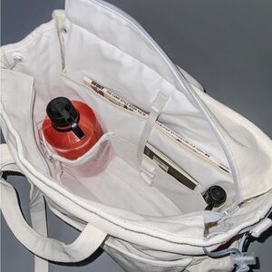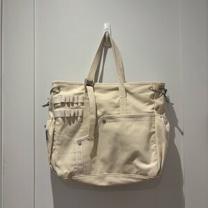 Constructed with heavyweight 100% cotton canvas and metal hardware. A multifunctional canvas tote that includes adjustable shoulder straps, dual side water bottle pockets, zipper top, and a 15” padded laptop compartment.