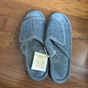 Unsex gray Memory Foam Slippers size large (men's 11–12 and women's 9–10). CROSSPOSTED. Rubber grip soles. Velcro adjustable for your foot width. NWT & Smoke free/Pet free home. See ALL photos for complete description/details.