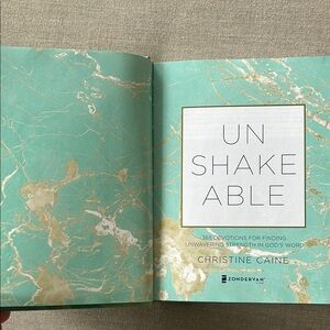 Unshakeable devotional book with a green and gold cover. Inspiring and uplifting content. Brand New