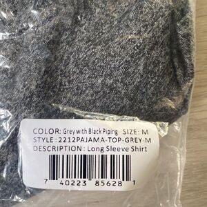 Unsimply Stitched Lounge Henley Pajama Longsleeve Shirt Grey with Black Piping M