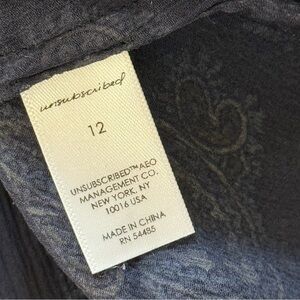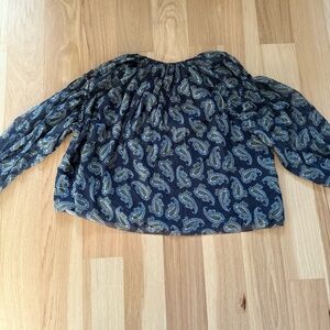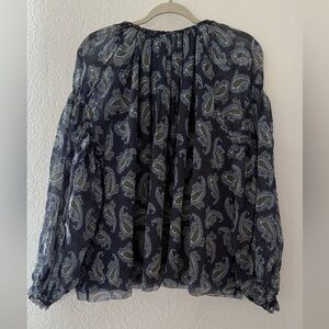 Unsubscribe Blue Paisley Women's Top 100% Silk Long Sleeve Size 12