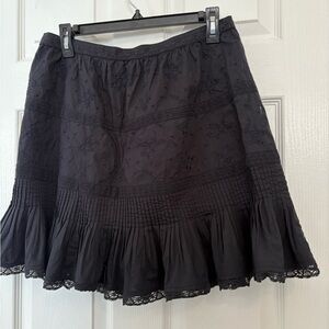 Unsubscribed Black Embroidered Boho Skirt – Eyelet Lace Hem Ruffle