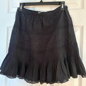 This Unsubscribed women’s black embroidered skirt in size Medium is brand new without tags. It features beautiful floral embroidery, delicate eyelet details, pleated lower panel, and a ruffle hem with crochet lace trim. Side zip closure. A versatile piece perfect for casual outings, vacations, or a chic boho look.
