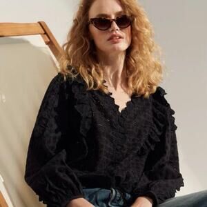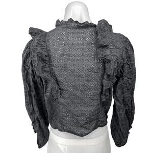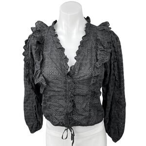Unsubscribed Black Eyelet V-neck Balloon Sleeve Ruffle Frill Crop Blouse Top Size 4