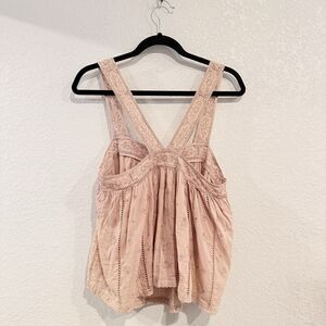 Unsubscribed pink Eyelet Lace Cotton Top Sleeveless Boho Style with Strappy Back