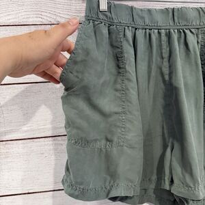 Unsubscribed Silk Paperbag Waist Shorts Green Pull On Relaxed Fit Pocketed