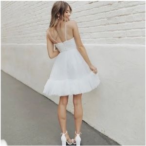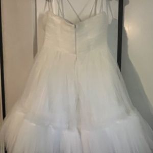 Never worn. Size Medium (6/8). I’m a size 8 and it fit like a glove. It’s beautiful, in pristine condition, and has absolutely nothing wrong with it. Just went in a different direction. Dress is handmade and only came with a fabric “M” tag attached, which was removed for try on purposes.