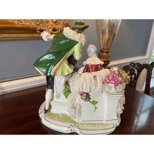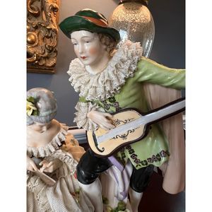 Unterweissbach German Porcelain Dresden Lace Large Figurine Serenading Couple 12"