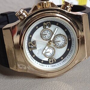 Untested Accutime Gold Tone And Black Watch. Sold As Is. Watch Has Not Been Tested But May Work. Check Out My Closet For Other Great Items!!! Thank You For Considering Making A Purchase.