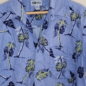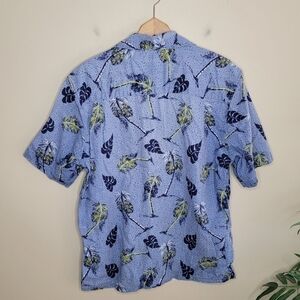 Untied | Blue & Green Hawaiian Tropical Palm Print Short Sleeve Button Front Shirt