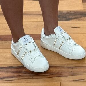 White rockstud sneakers fits size 6-6.5. My bestie got these for my birthday but they are a bit too small.