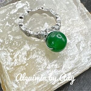 Untreated Emerald chunky sphere 10mm silver gem ring