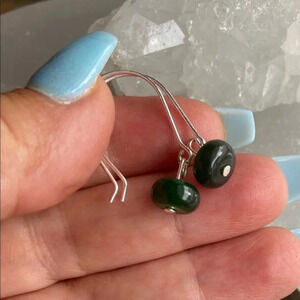 Untreated emerald 8mm rondel dangle silver earrings/fall vibes colorful