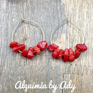 Untreated ruby spheres gold hoops drops Victorian earrings colorful