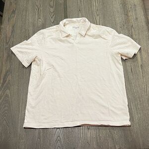 Untuck It Men Polo Peyton Regular Fit Striped Short Sleeve Cotton White Tan L