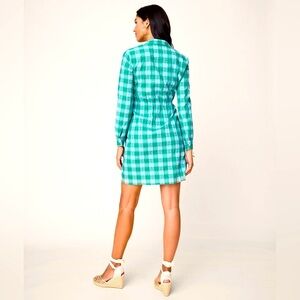 Untuck It for Her Seersucker Mila Button Down Shirt Dress Blue Green Gingham Med
