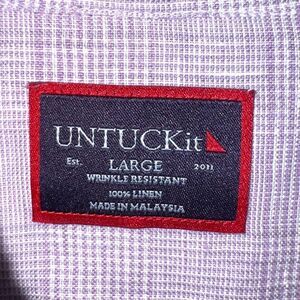 UntuckIt Purple Non Iron 100% Linen Button Down Shirt Size L