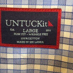 UntuckIt Shirt Men's Size Large Slim Fit Gingham Blue White