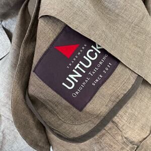 Elevate your wardrobe with this stylish Untuckit blazer jacket! Crafted from 100% linen, this gray blazer features a classic two-button design. Perfect for adding a touch of sophistication to any outfit.