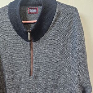 The Untuckit Belguardo Birdseye Sweater in size XXXL is a stylish and comfortable option for men looking to add a preppy touch to their wardrobe. Made from 100% fine Merino wool, this sweater features a classic birdseye pattern, long sleeves, and a zipper accent. Perfect for various occasions such as travel, parties, casual outings, workwear, and business meetings, this sweater is designed for a regular fit and is ideal for the winter, fall, and spring seasons. Made in China, this sweater is sure to keep you warm and fashionable during your everyday activities like walking and golfing.