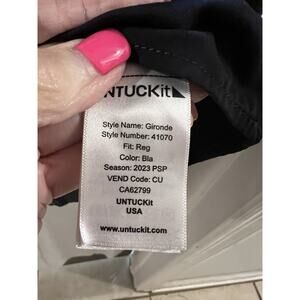 The Untuckit Black Men’s Short Sleeve Gironde Button Front Shirt in size L is a versatile piece for a man's wardrobe. Made from a blend of nylon and spandex, this shirt offers a comfortable fit with a regular style. The solid black color and collared neckline give it a classic and preppy look, suitable for various occasions such as travel, parties, casual wear, or even workwear. With its easy-care feature and machine washable material, this shirt is both practical and stylish for the summer, fall, and spring seasons.
