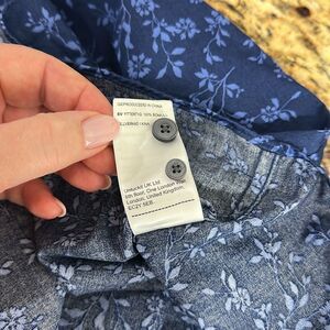 Stylish blue button-up shirt with a floral pattern
