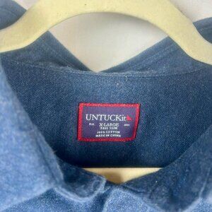 Untuckit Button Down Shirt Men XL Tall Long Blue Brushed Cotton Long Sleeves