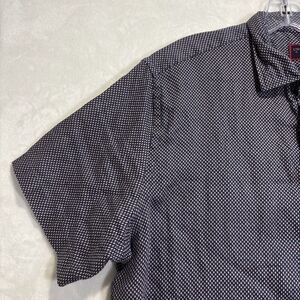 Untuckit Cadalso Button Up Short Sleeve Shirt 100% Linen Geometric Navy Size XL
