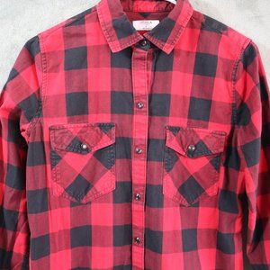 Untuckit Dylan Flannel Womens Small 4 Black Red Plaid Long Sleeve Pearl Snap
