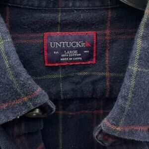 Untuckit Flannel Shirt Men’s Large Blue Green Red Window Pane Plaid