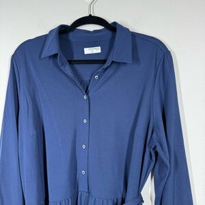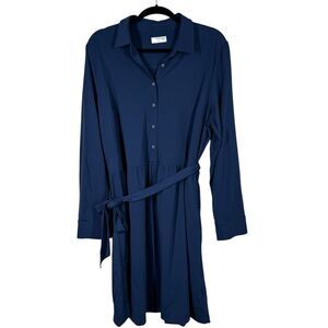 Untuckit Frances Shirt Dress Navy Blue Button Front Long Sleeve Collar Size XL