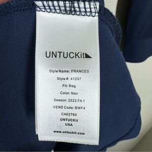 Untuckit Frances Shirt Dress Navy Blue Button Front Long Sleeve, Has Pickets, Collared, Ties At The Waist, In Excellent Preowned Condition. Women’s Size XL