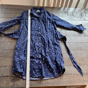 Untuckit Madeline Navy Polka Dot Cotton-Stretch Belted Shirt Dress, Size 12 Chic